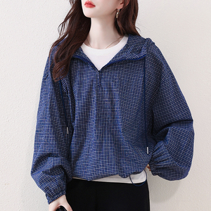 实拍时尚格子连帽衬衫女秋季2025年新款宽松上衣大码欧货洋气衬衣