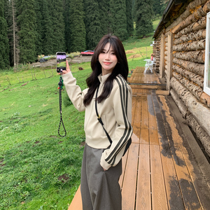 法国公鸡韩国代购25秋女士运动休闲莫代尔混纺半拉链立领套头卫衣