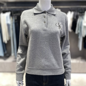 CK女士刺绣字母标棉涤翻领卫衣