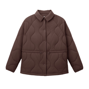 HM女装短外套2025冬季新款单排扣灯芯绒领绗缝菱格纹夹克1282393