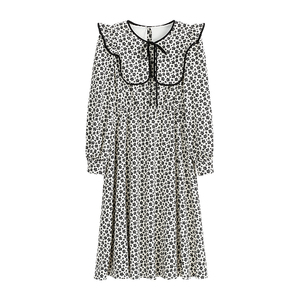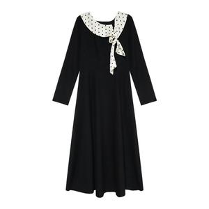 贰羊设计【南艺】法式气质波点飘带领拼黑色连衣裙女高级感收腰裙