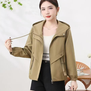 TRIP&CO2025新款女款经典翻领透气舒适通勤复古纯色短款夹克外套