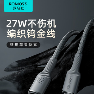 罗马仕快速车载加长2米XR冲电8plus短ipad闪充PD27w快充平板适用苹果15数据线iPhone14充电线13手机12promax