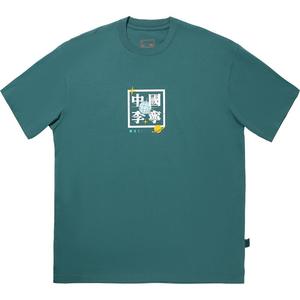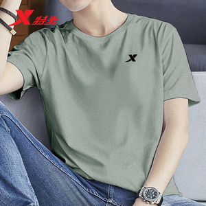特步短袖t恤男夏季纯棉透气宽松黑色休闲上衣运动服男士半袖体恤