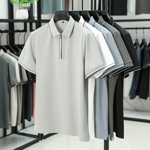 2025年夏季新款纯色打底衫刺绣短袖男款T恤冰丝无痕翻领polo衫男
