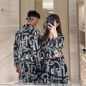 巴洛克情侣睡衣冰丝长袖长裤套装