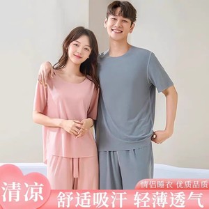 家居服无痕情侣睡衣男士夏季薄款螺纹女款短袖家居服套装凉感休闲