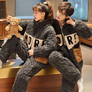 情侣珊瑚绒夹棉加厚加绒睡衣
