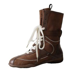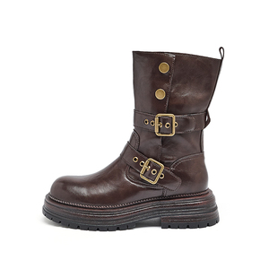 达芙妮皱面堆堆靴厚底马丁靴棕色