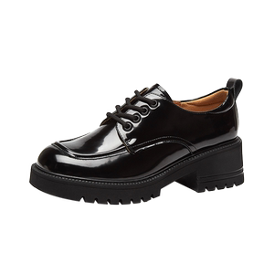 乐福鞋达芙妮厚底蝴蝶小皮鞋亮面
