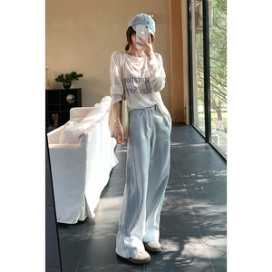 eihey诶嘿Jennie同款重工钉珠复古水洗直筒牛仔裤宽松拖地长裤女