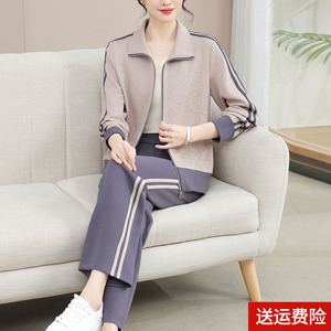 中年妈妈春秋洋气上衣2024新款中老年女运动套装两件套