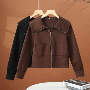 缪真韩版短款娃娃领卫衣外套女