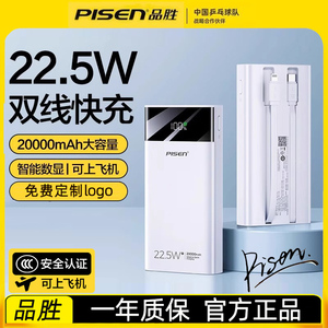 【3C认证充电宝】品胜2025新款充电宝20000毫安大容量22.5W超级快充超便携自带双线可上飞机适用苹果小米2万