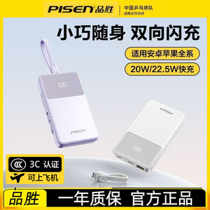 【3C认证充电宝】品胜20000毫安自带线充电宝大容量快充22.5W闪充便携移动电源适用iPhone17华为小米可上飞机