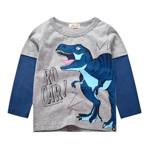 儿童拼接T恤长袖春季男童洋气上衣撞色潮小宝宝卡通打底衫女纯棉