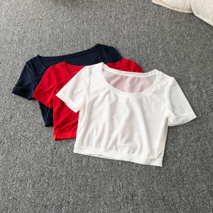 吊带裙内搭打底衫女蕾丝短袖带胸垫网纱一字假领半截裹胸背心上衣