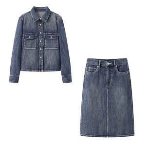 DN高端定制2025春季新款时尚百搭休闲宽松设计感牛仔衬衫半身裙女