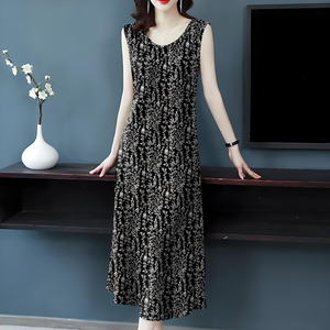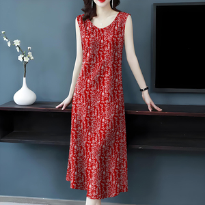 2025夏新款中老年修身减龄遮肚妈妈装印花背心吊带中长款连衣裙女