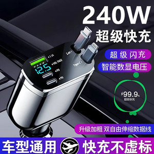 隐形车充车载手机充电器超级快充苹果安卓汽车一拖二点烟器闪充头