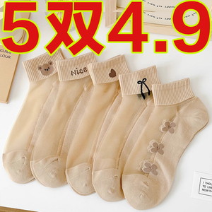 肉色水晶丝袜子女短袜夏季薄款纯棉底玻璃丝卡通小熊船袜韩版运动