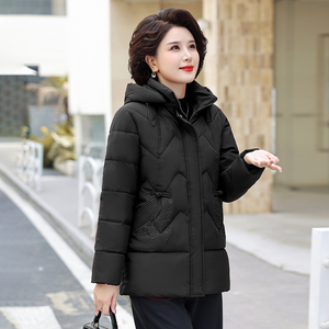 YAYA鸭鸭短款羽绒服女款中年妈妈鸭绒保暖冬装岁中老年人连帽外套