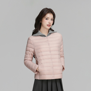 拉夏贝尔轻薄羽绒服女士短款冬季韩版修身圆领无领内胆保暖外套