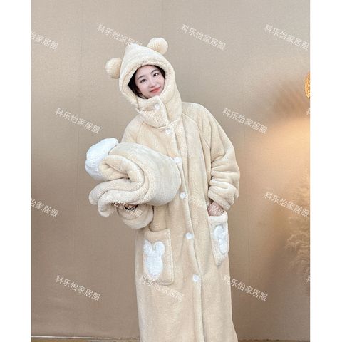 秋冬加厚保暖睡衣家居服套装双层中长款睡袍毛绒浴袍时尚男女款