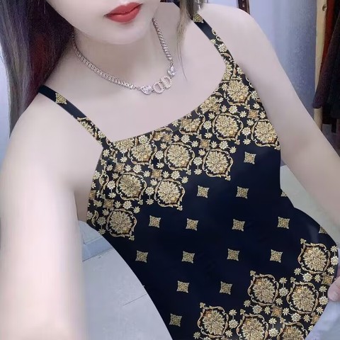 18¥ HU926 ZRlffapQcJo¥ https://m.tb.cn/h.S6DLL4n 撞色吊带女2025夏新款印花修身外穿显瘦无袖上衣吊带打底衫女