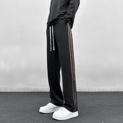 潮牌时尚拼接织带直筒裤男女款