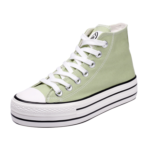 人本抹茶绿高帮厚底内增高帆布鞋