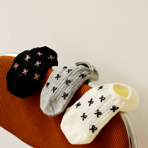 米吉诺拉 无骨夏季薄款透气网眼少女蝴蝶结袜子女隐形款船袜纯棉
