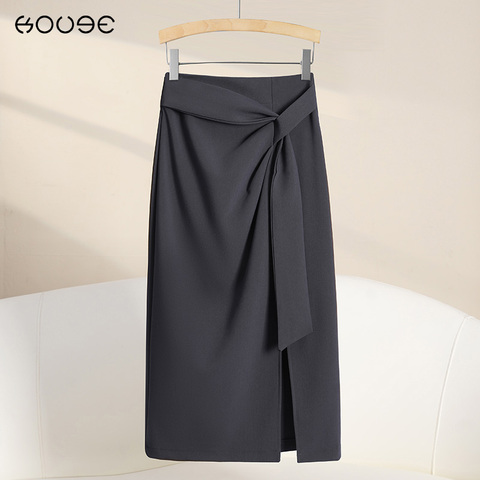 灰色西装半身裙女夏季2025新款设计感a字中长款职业开叉包臀裙子