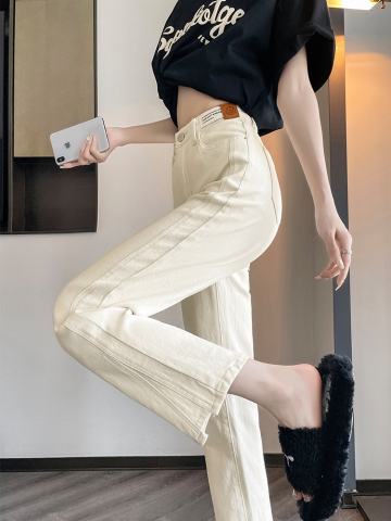 米白色烟管牛仔裤女2025秋季新款高腰小个子九分显瘦白色直筒裤子
