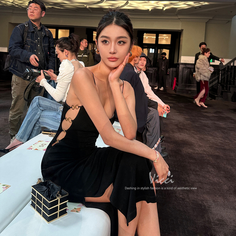 性感一步裙纯色镂空连衣裙