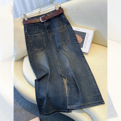 牛仔半身裙女2025新款今年流行爆款夏季薄款超好看前开 叉a字半裙