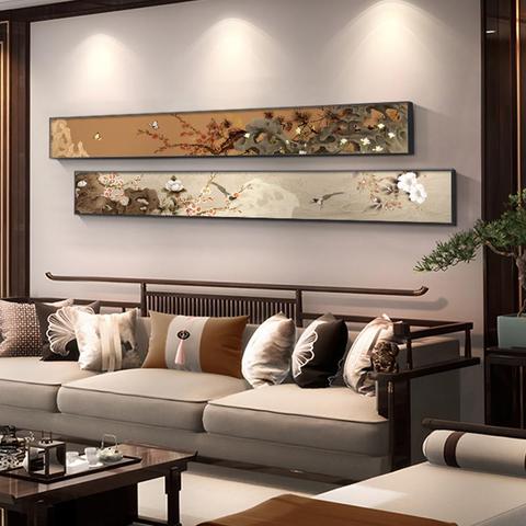 高装感宋福石花瑞代美学挂画级轻奢中古风客厅沙发背景墙饰中画式