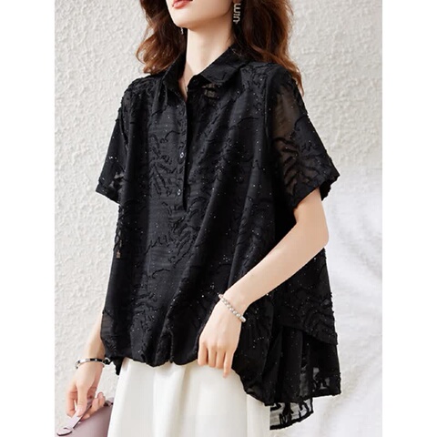 半开襟浮雕薄款短袖衬衫女2025夏季新款时尚休闲百搭遮肉显瘦上衣