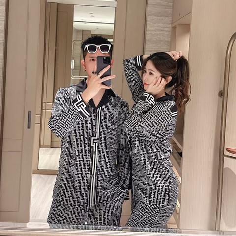 27¥ CZ356 L1cc4Br36bR¥ https://m.tb.cn/h.S5y2erR 巴洛克情侣睡衣男女同款潮牌老花冰丝绸家居服长袖长裤春秋高级感