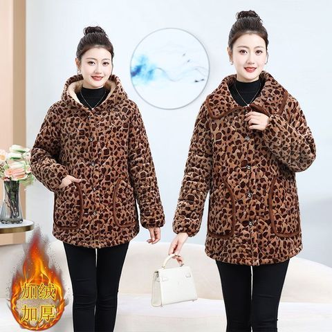 四川省省服棉衣女外穿新款冬天罩衣加厚加绒时尚保暖年轻豹纹棉服