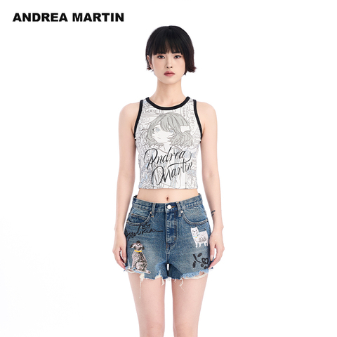 ANDREA MARTIN2025夏季新款撞色印花背心女前后两穿短款吊带上衣