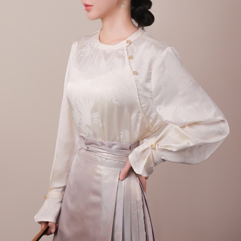 新中式国风提花衬衫女长袖宽松