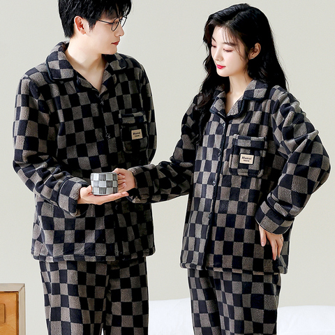 情侣睡衣女秋冬季加厚套装家居服男保暖长袖春秋珊瑚绒法兰绒外穿