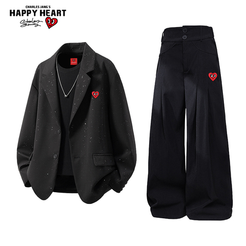 查尔斯桃心高级感满天星西服两件套装男秋季夹克外套宽松直筒长裤