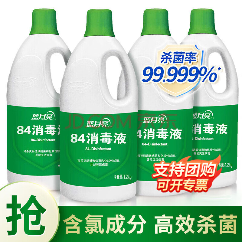 蓝月亮84消毒液1.2kg*4瓶套装 衣物家用除菌液消毒水 84消毒液1.2kg*4瓶