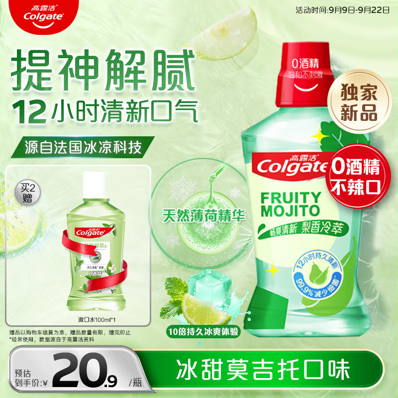 高露洁(Colgate)【孙颖莎同款】梨香冷萃冰凉精华漱口水500ml*1含氟深层清洁自营