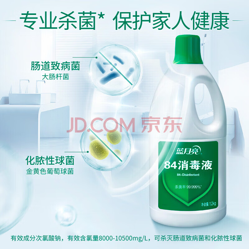 蓝月亮84消毒液1.2kg*4瓶套装 衣物家用除菌液消毒水 84消毒液1.2kg*4瓶