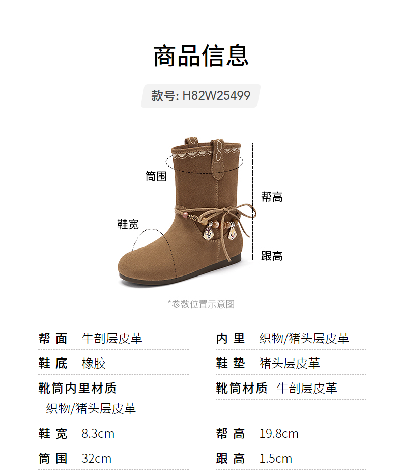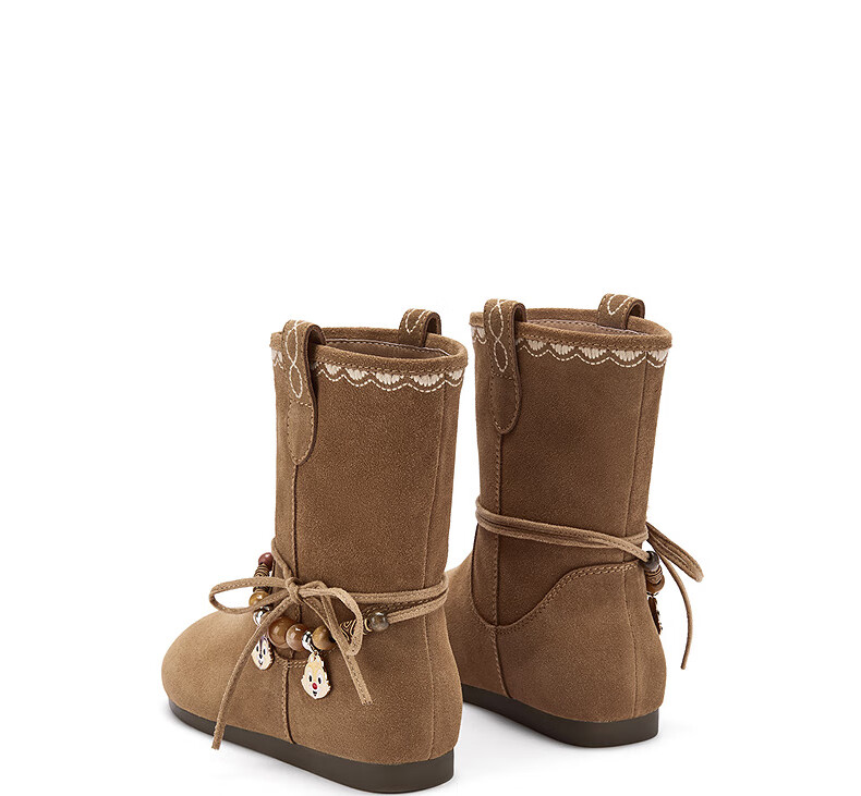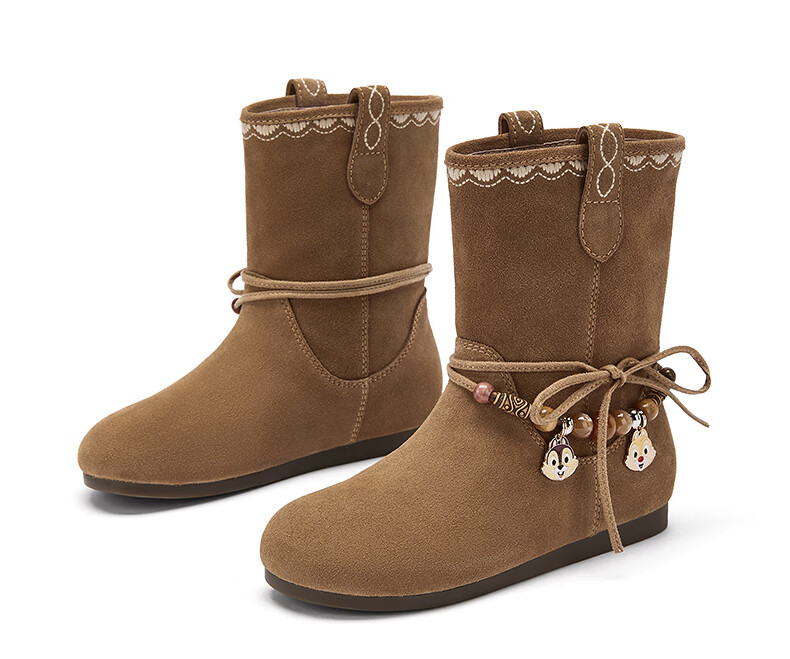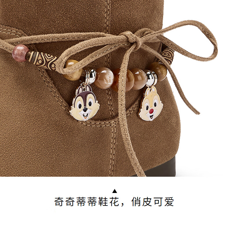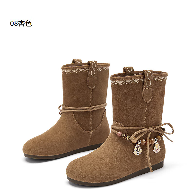 热风【迪士尼系列】复古西部靴女靴2025年冬季新款美拉德休闲时装靴子 08杏色 37