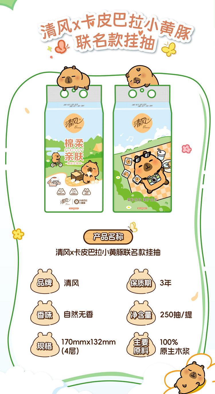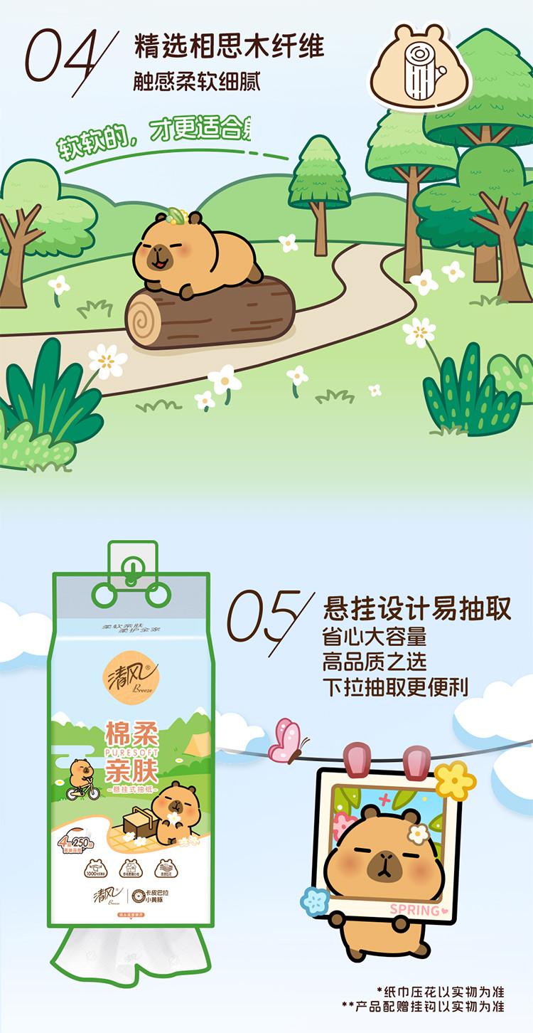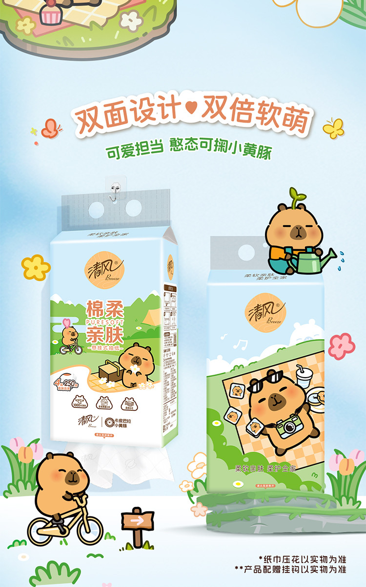 清风 【6大提1500抽】卡皮巴拉4层悬挂式便利挂抽家用加厚抽纸餐巾纸巾 【售价】:¥27 下单链接: