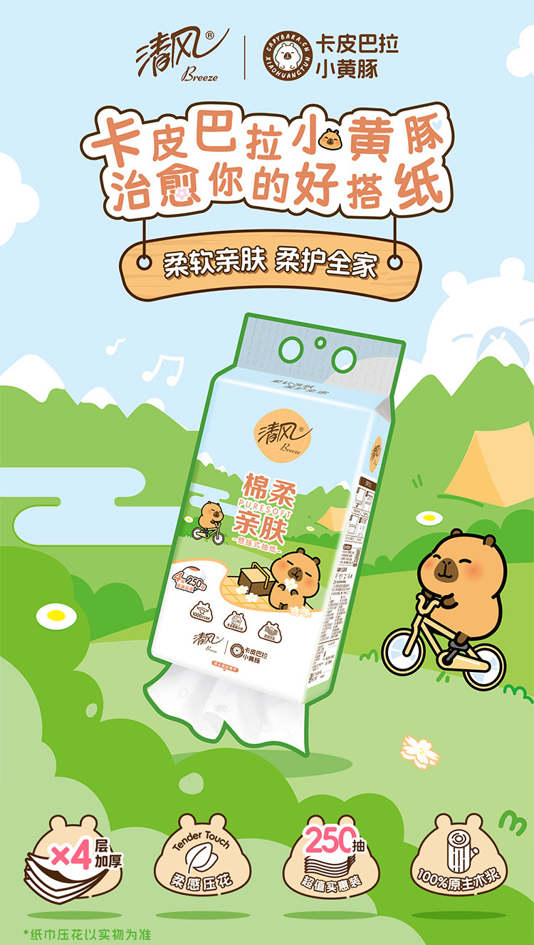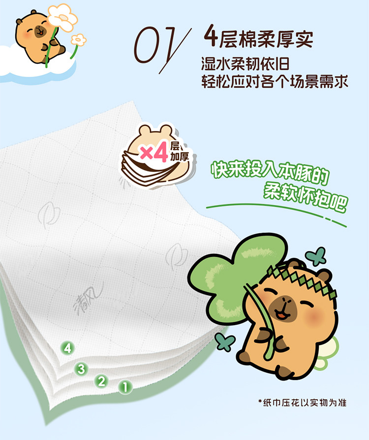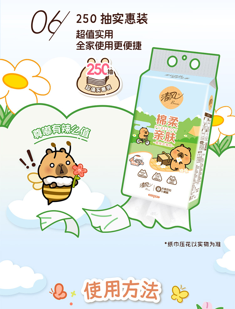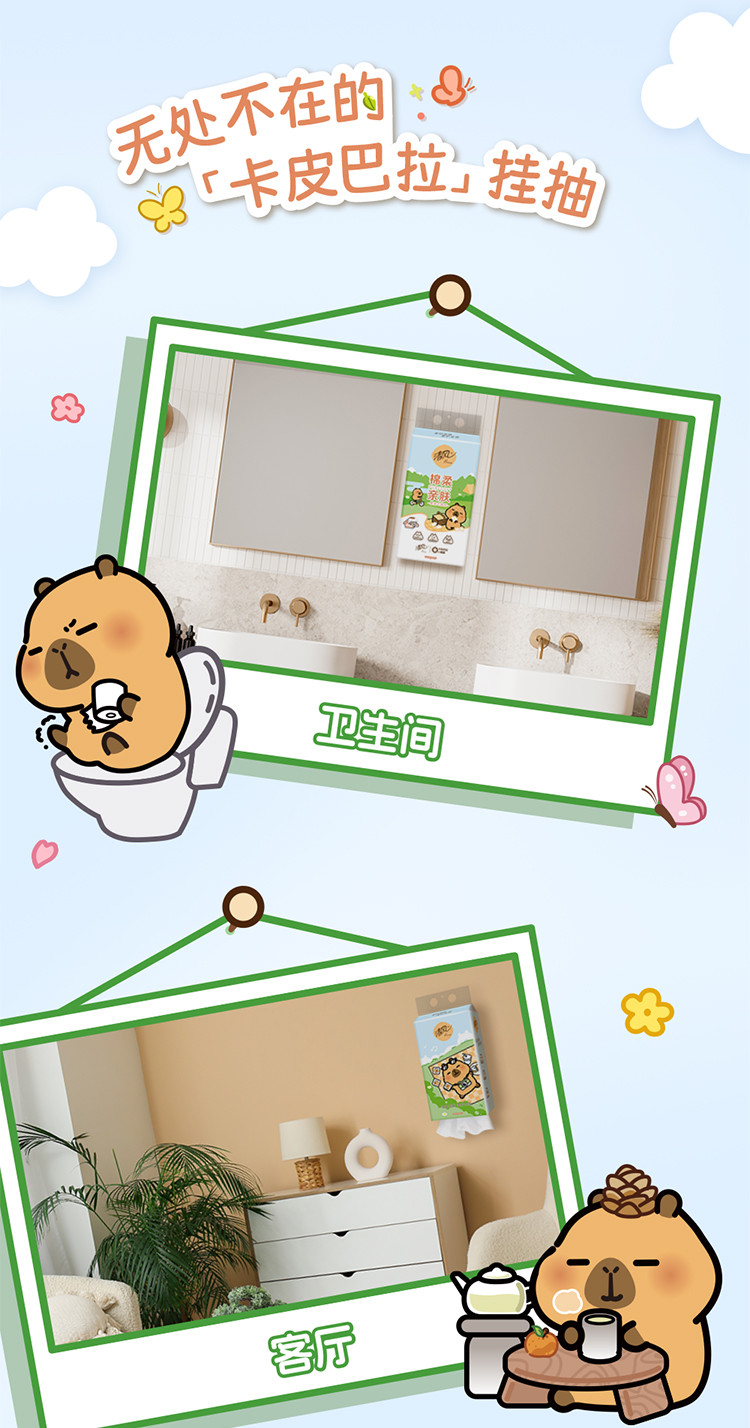 清风 【6大提1500抽】卡皮巴拉4层悬挂式便利挂抽家用加厚抽纸餐巾纸巾 【售价】:¥27 下单链接: